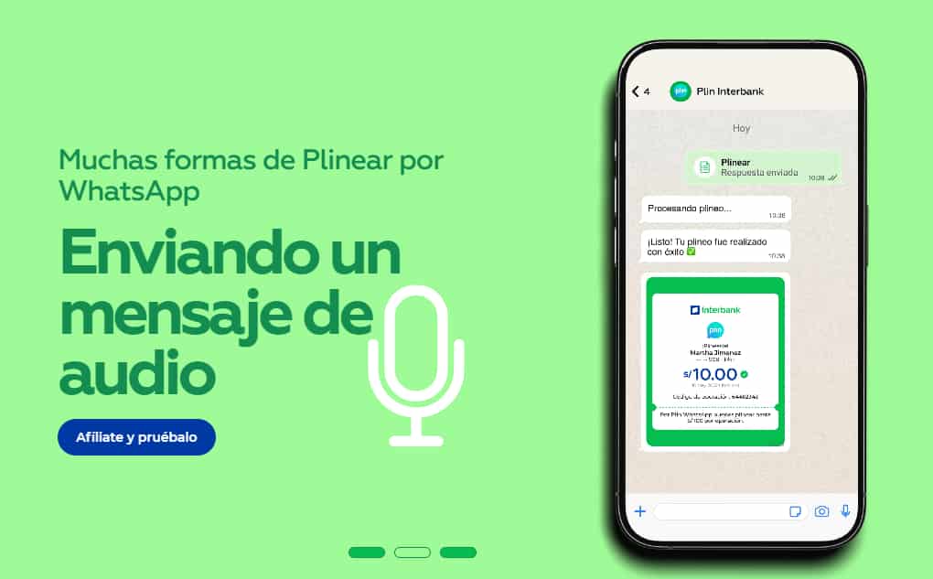 Así que, si aún no lo pruebas, afíliate hoy mismo y descubre todas las formas de Plinear por WhatsApp con Interbank. Tu dinero, ahora, viaja tan rápido como tus mensajes.